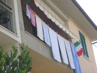 Passo anche davanti a un bucato steso e sorvegliato da un tricolore (il primo di altri che vedrò in seguito), a celebrare la recente e… gloriosa vittoria agli europei in casa inglese. La simpatia prevale in me su considerazioni più critiche.