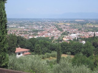 Dopo il passaggio attraverso un centro parrocchiale popolato da adolescenti in vacanza, le indicazioni riportano su una strada asfaltata in forte salita, che punta verso il piccolo borgo storico.
