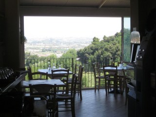 Durante il viaggio ho consumato una buona metà della mia scorta di frutta secca e crackers semintegrali, ma l’appetito ora non manca. Rinuncio comunque tranquillamente all’idea di un vero pranzo e ordino un panino al formaggio e una birra, che potrò consumare su un terrazzo in posizione davvero felice.