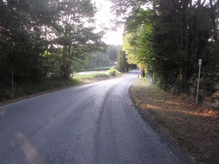 Dire “si tuffa” è particolarmente appropriato, perché la strada rurale s’inoltra in ripida discesa dentro un avvallamento.