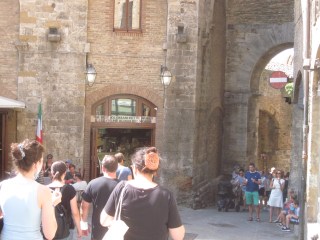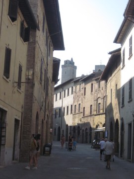 C’è parecchia gente in giro: dapprima, a dominare, sono i locali accenti toscani, poi, man mano che ci si avvicina al cuore del borgo antico, i turisti stranieri s’impongono.