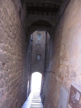 L’inconfondibile profilo turrito del paese medievale appare all’orizzonte (come si può vedere nell’immagine iniziale di questo racconto). La buona e costante andatura odierna mi permette di raggiungerlo in tempo per concedermi al suo interno la sosta di metà percorso.