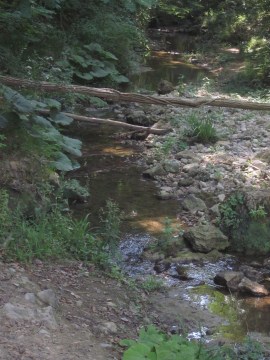 Il fondo dell’avvallamento è percorso da un piccolo ruscello, da guadare.