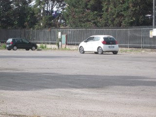 Una signora su un’automobile bianca, probabilmente esercitandosi alla guida, esegue, ripetutamente e a bassa velocità, un ampio girotondo.