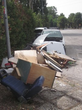 Lo trovo in uno slargo a parziale vocazione artigianale, che quasi improvvisamente viene a sostituire il tour panoramico.