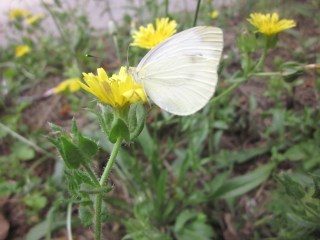 Strano contrasto con il panorana circostante, una piccola aiuola fiorita ospita un certo traffico di farfalle bianche.