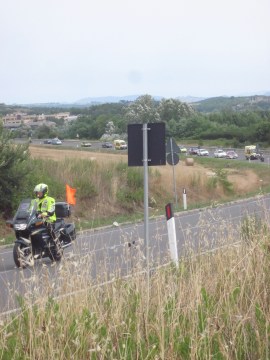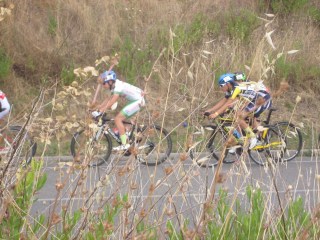 I segnali acustici di un seguito, distanziato, interminabile, di motociclette, annuncia il passaggio di una gara ciclistica.