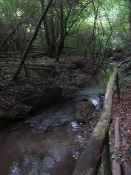 È un bosco molto ombroso e umido, attraversato da un vivace corso d’acqua.