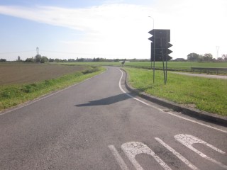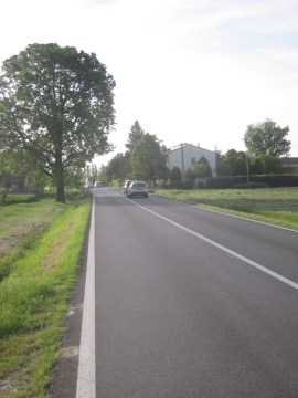 Le condizioni ambientali sono pessime: una lunga provinciale senza banchina, percorsa a tratti dal traffico nervoso e frastornante dell’ora di punta; l’attenzione continua è d’obbligo. In un momento di tregua fotografo la sede stradale.