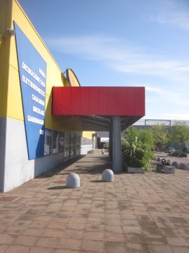 Benchè accuratamente occultato, riconosco, all’interno di quella caratteristica ellisse, il marchio del “Mercatone Uno”, ormai destinato all’archeologia industriale.