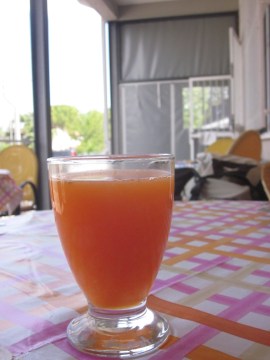 Porto il mio calice arancione sul tavolino nel terrazzo, confortevolmente al riparo dal vento, che ha cominciato a soffiare con una certa insistenza.